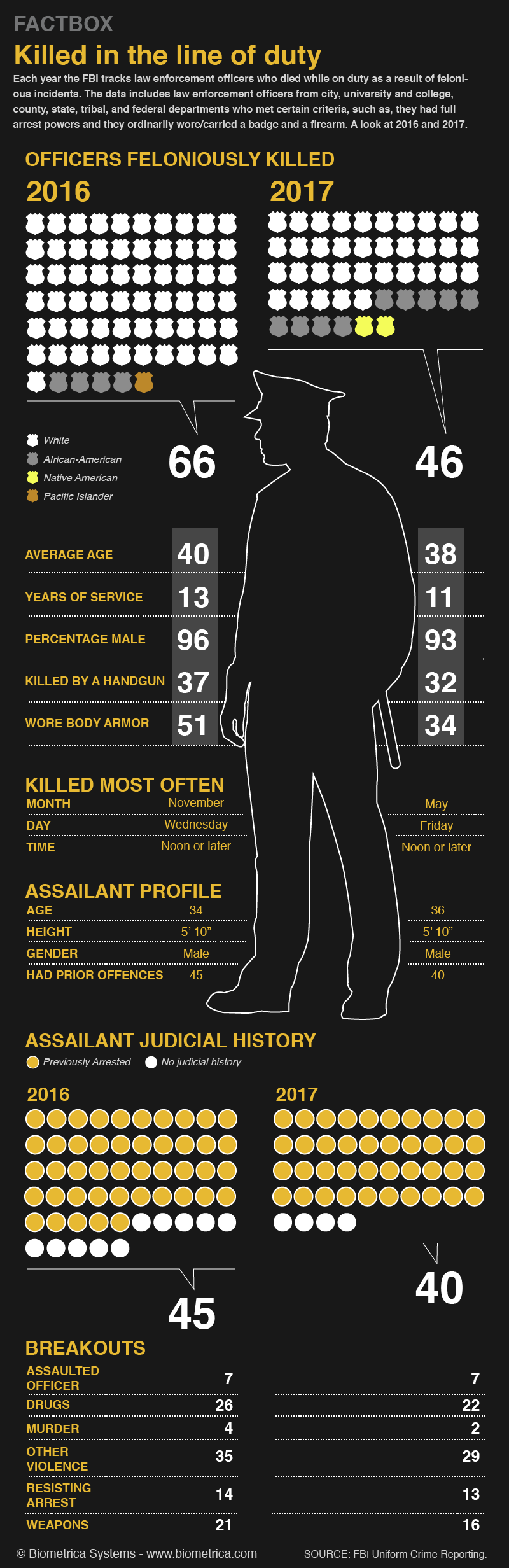 14 officers managed to fire their weapons in 2016, 11 attempted to do so before being killed. In 2017, 10 fired their weapons and 10 attempted to do so before being killed in the line of duty.