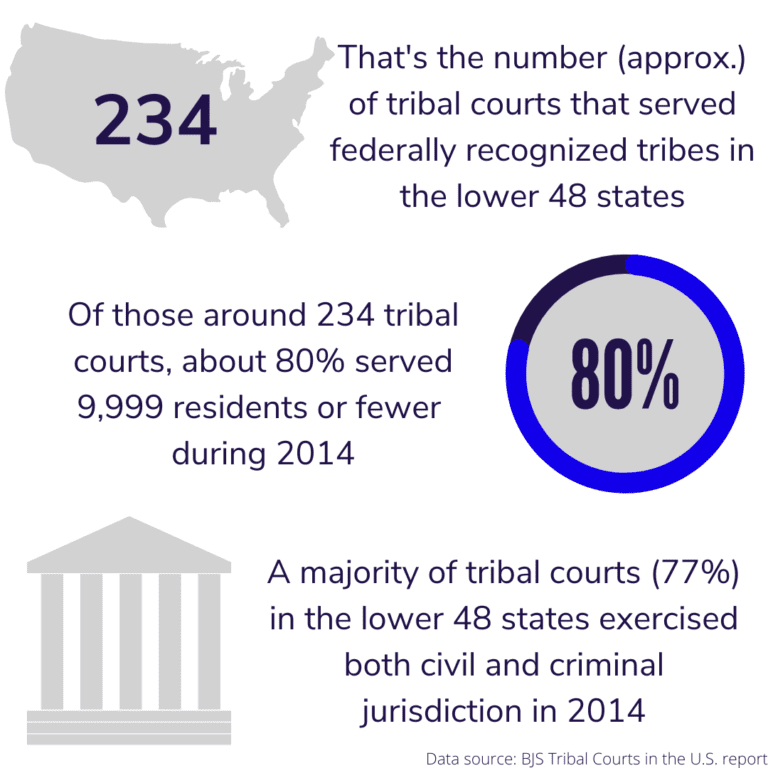 Why is the report important? One of the key aspects of sovereignty is to “to establish a judicial system and administer justice.” And each of the three types of sovereign entities in the United States (the federal government, the states, and the Indian tribes) has its own judicial system, and plays a role in the administration of justice, and in maintaining public safety. In this piece, we present key highlights of the report in a series of graphics.